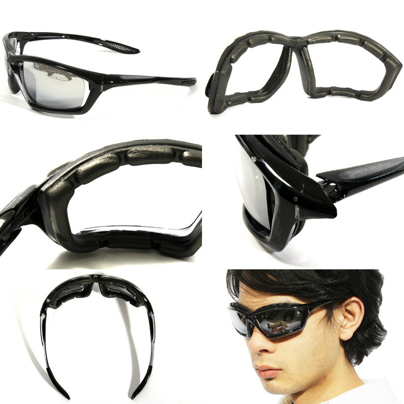 こちらのサングラスはレンズの内側にスポンジ状のクッション材を使用しており、空気の抵抗が少なくなっておりますので、バイカーの方やストリート系スタイルの方に、おすすめのアイテムです◎またジョギングや花粉症対策など使用用途は様々!!クッションは取り外し可能なので、実用的なご使用だけでなく、オシャレのワンポイントにも◎作りもしっかりとしておりますので、きっと長年ご愛用頂けるかと思います★